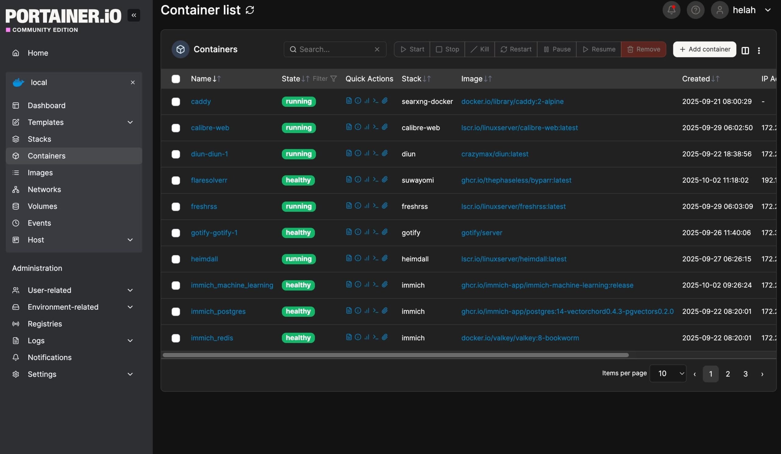 En Portainer podemos ver si los contenedores Docker están funcionando bien.