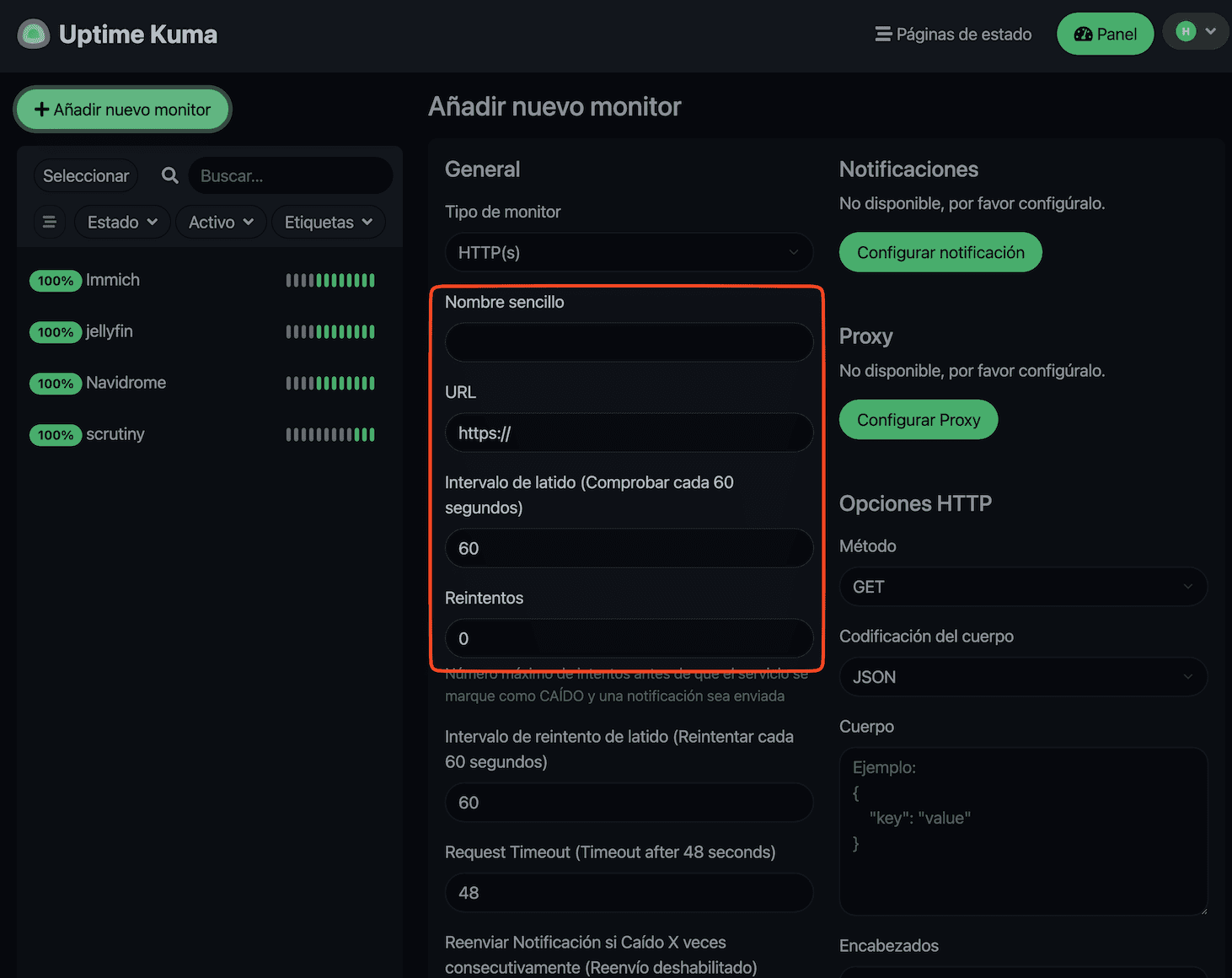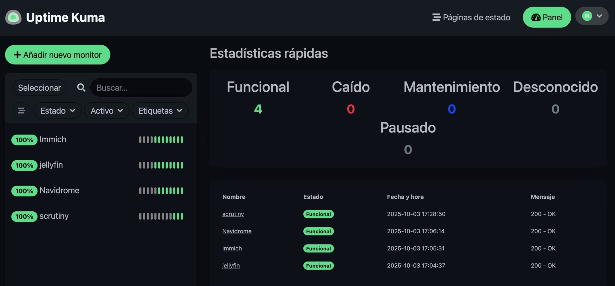 Opcional: configuramos Uptime Kuma para saber si los contenedores están funcionando