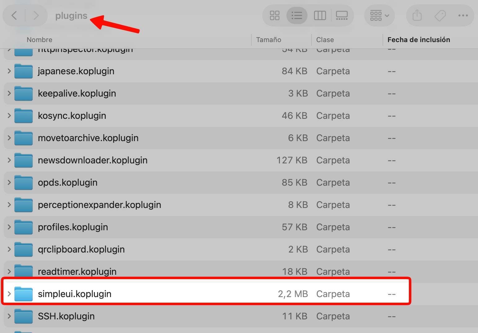Instalamos simpleui.koplugin en KOReader