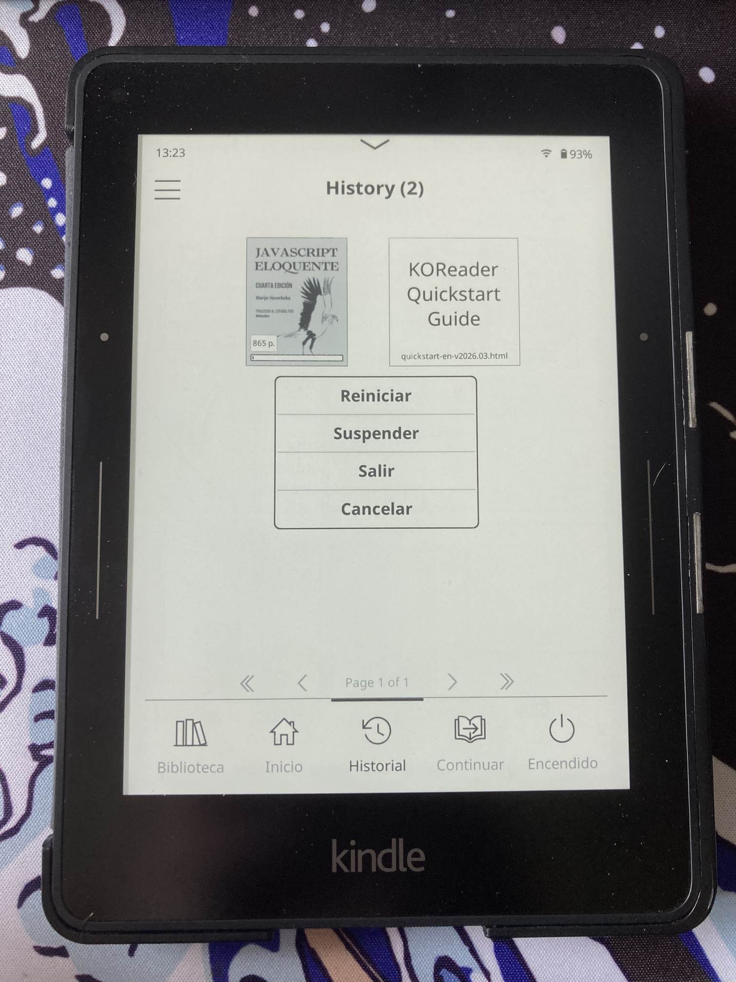 Ahora toca expulsar el Kindle del ordenador y luego reiniciamos solo KOReader (o el Kindle de manera completa, lo que prefieras).