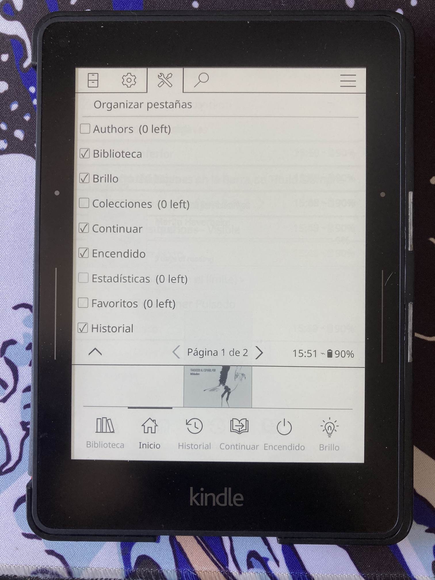 En menos de cinco minutos pasas de un listado de carpetas a una pantalla de inicio con todos tus libros, dándoles a tus ebooks la importancia que merecen: portadas grandes, barra de progreso, accesos directos a la biblioteca, historial… Y tienes muchos ajustes que puedes usar: cambiar la escala, módulos, pestañas de navegación, atajos.