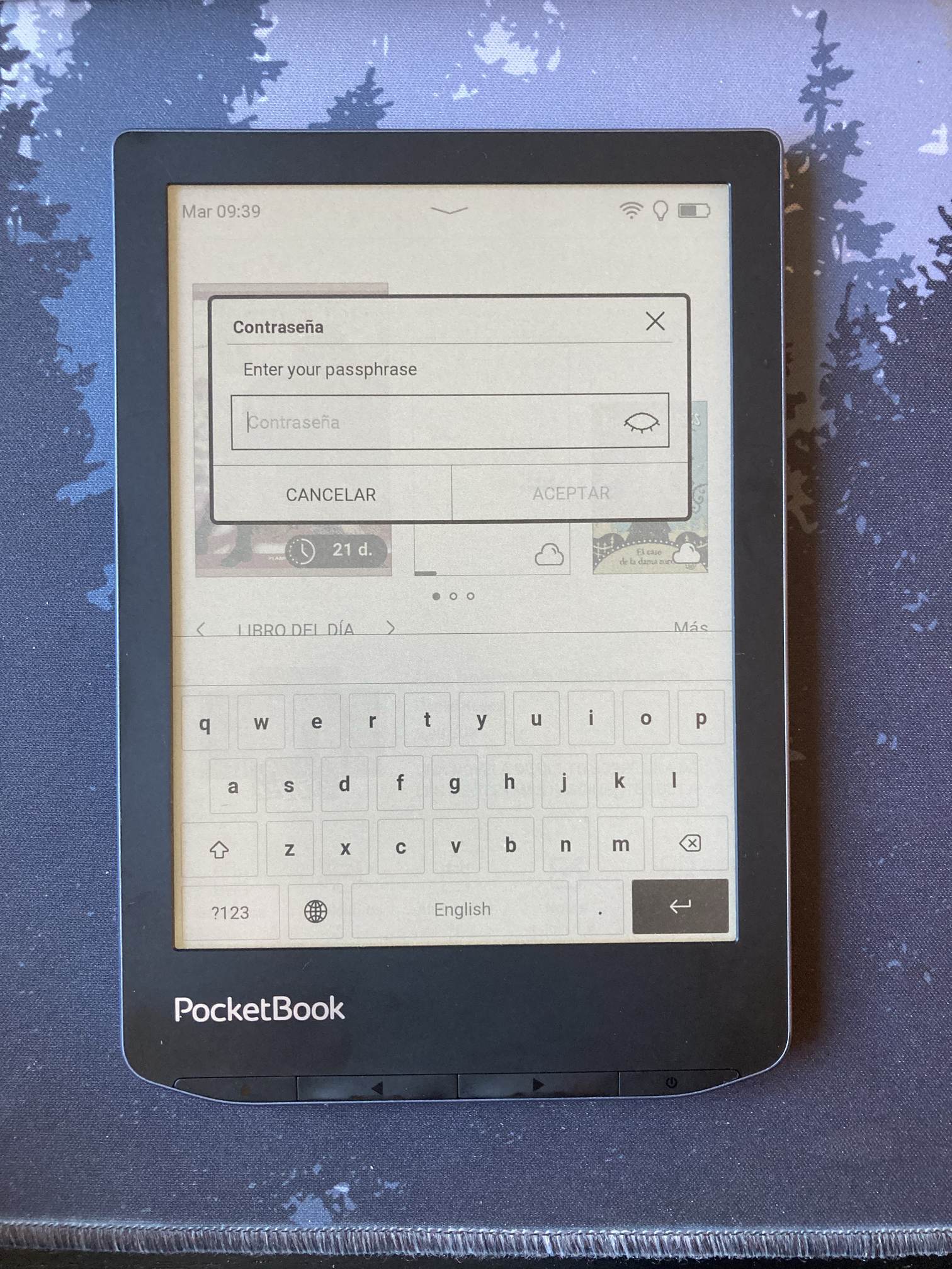 Ahora, si ya tienes el archivo en tu eReader siguiendo una de las dos opciones, pinchas en el libro y te saldrá la opción de meter tu contraseña para luego poder el libro o el cómic: