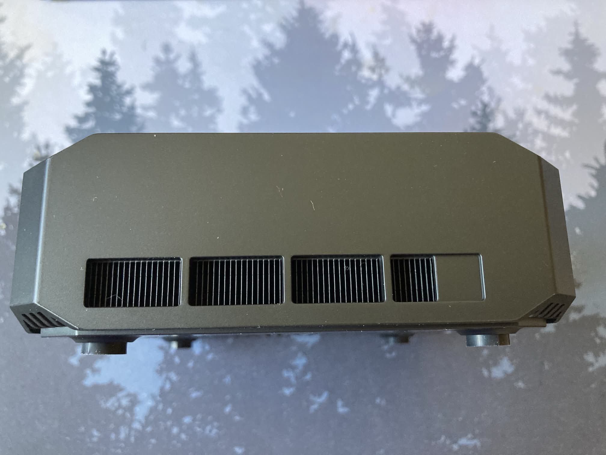 Tiene rejillas de ventilación por todos lados, algo que vas a agradecer en verano cuando pongas a toda pastilla el procesador con Ollama. En la parte inferior tiene 4 patas de goma y en el centro puedes ver otra rejilla por donde sale el aire directamente.