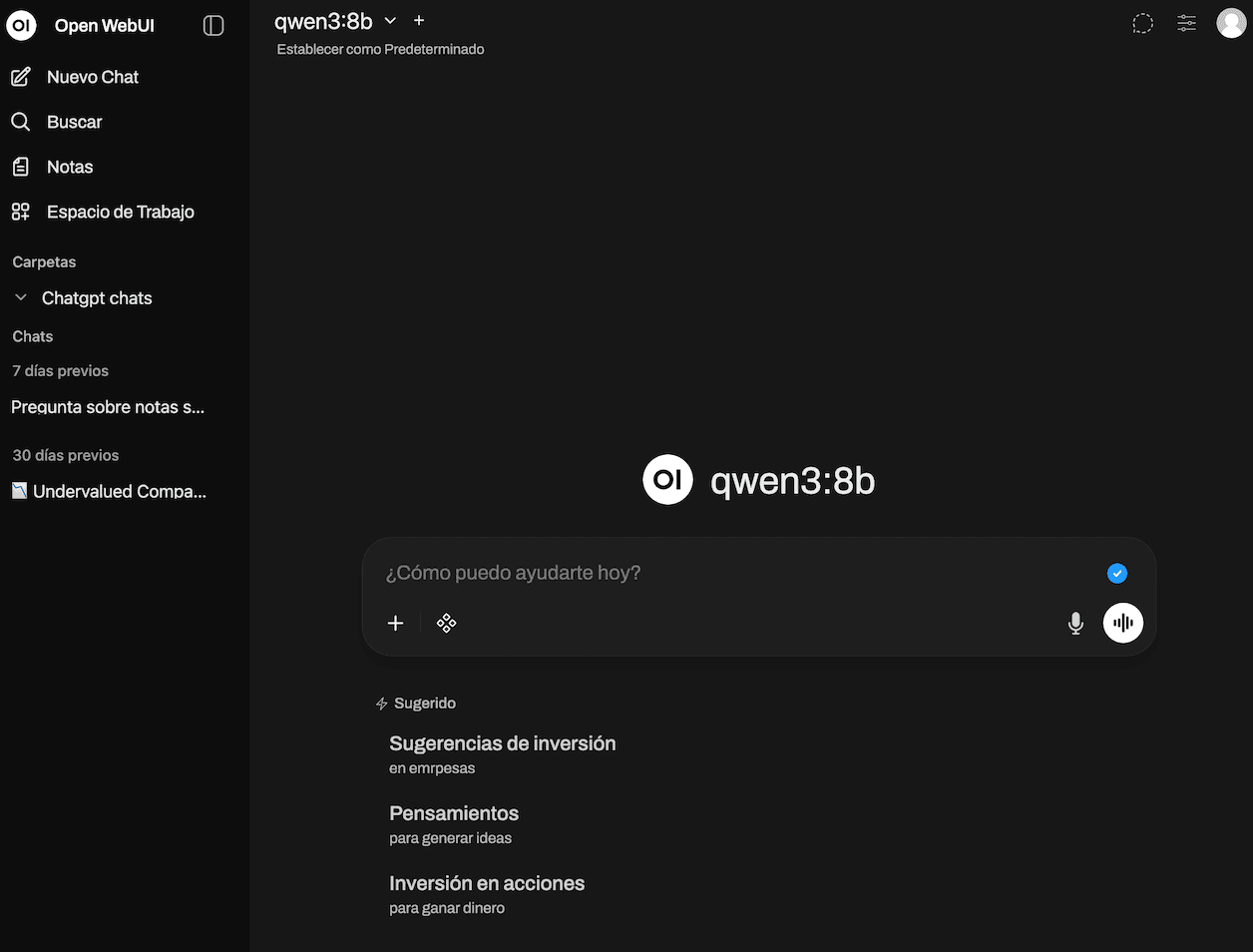 Ahora ya tienes un sistema totalmente funcional. Con Open WebUI incluso puedes conectar tu base de conocimiento de Obsidian (programa de notas que guarda sus archivos en formato markdown) y dejar que alguno de estos modelos las analice y realice conexiones. Por supuesto, puedes importar todas tus conversaciones de ChatGPT.