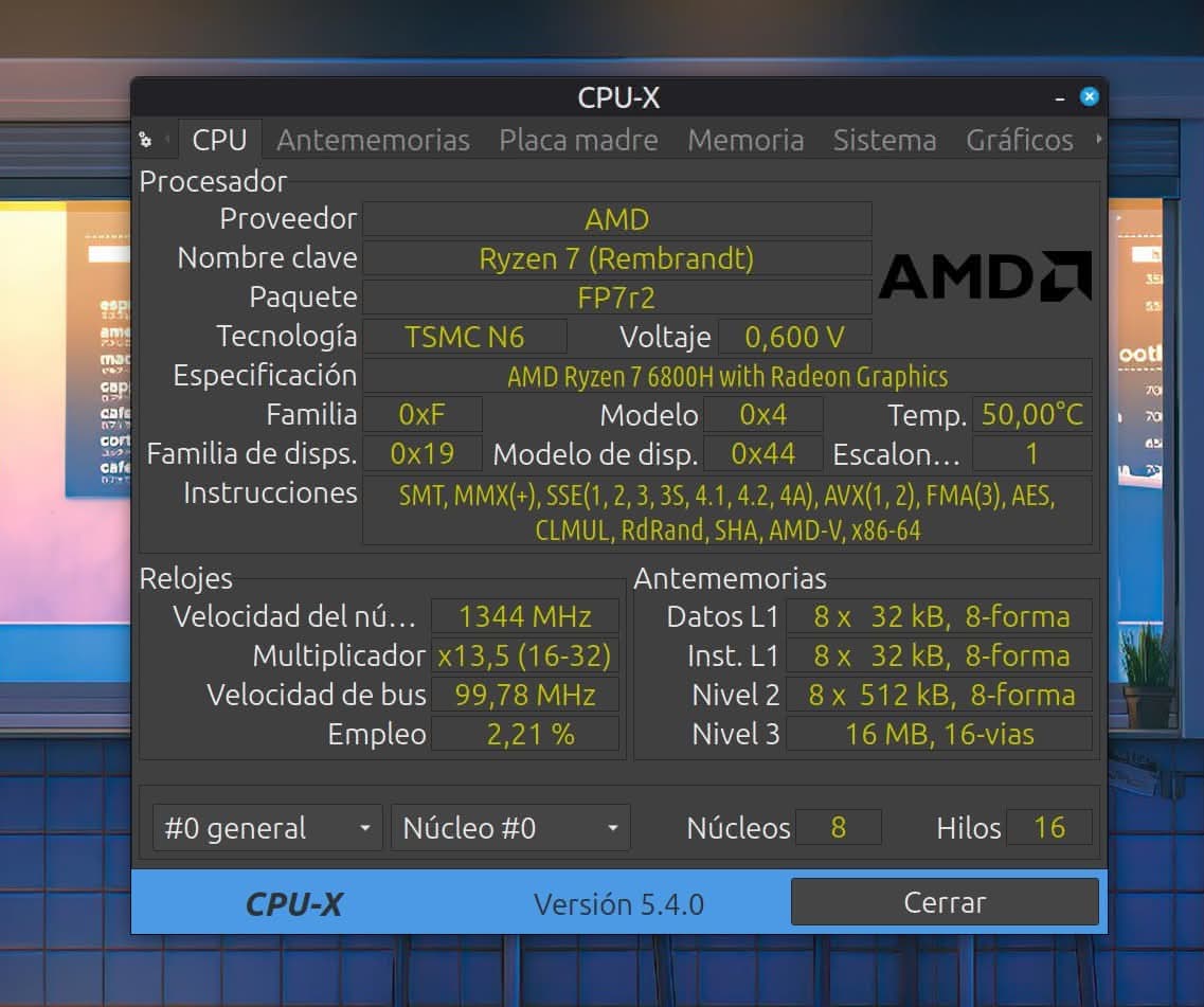 - Procesador (CPU): AMD Ryzen 7 6800H