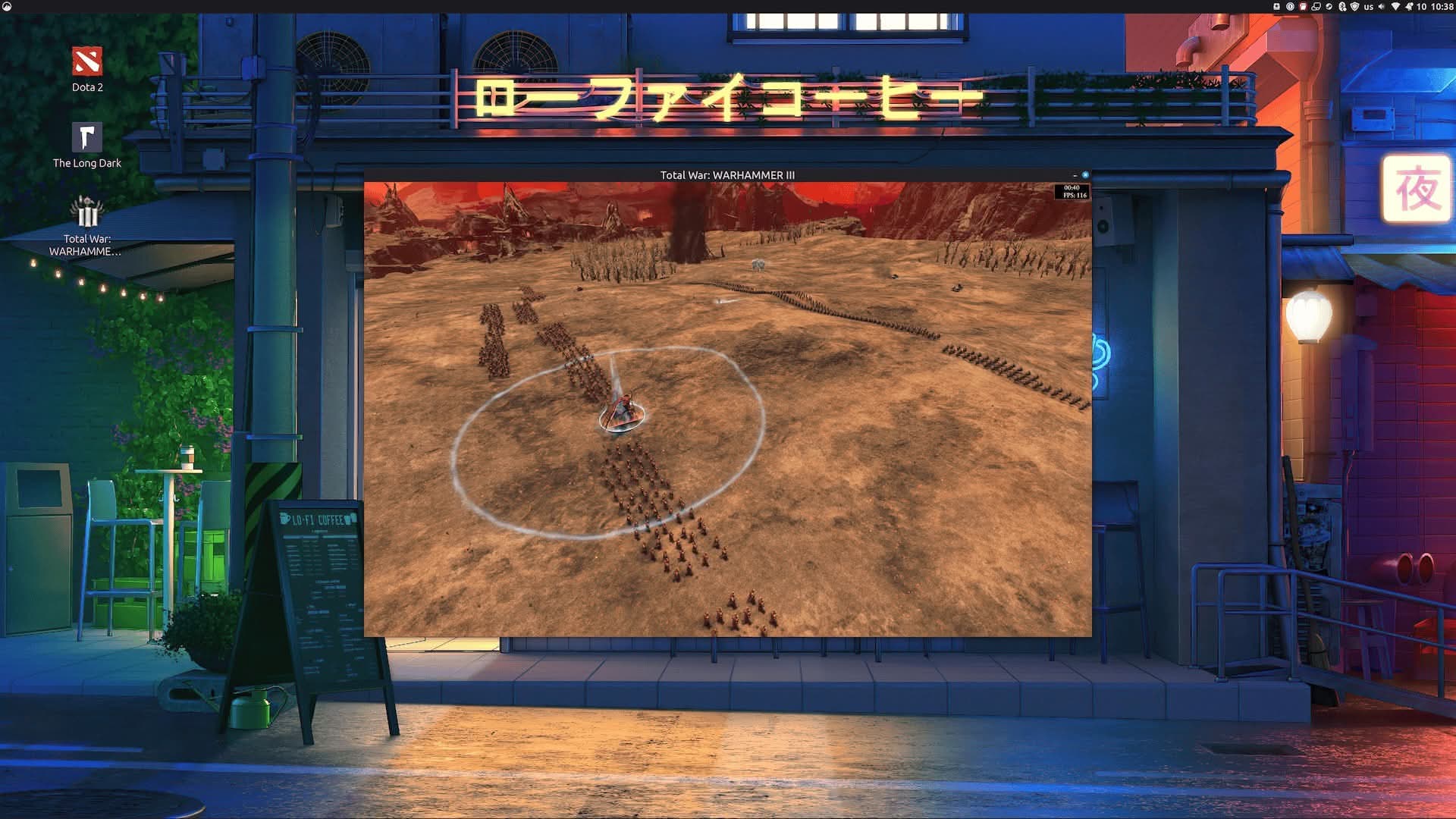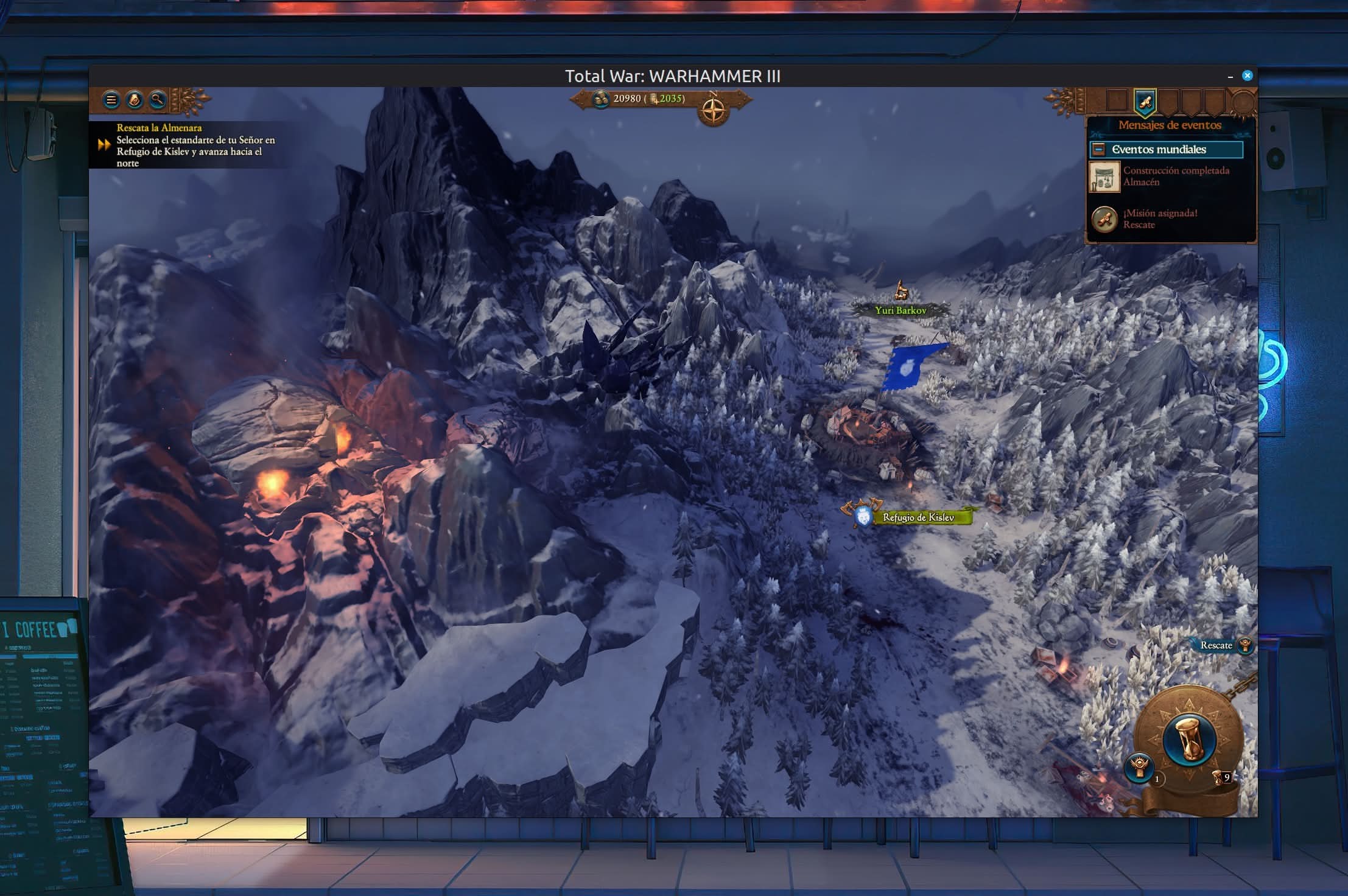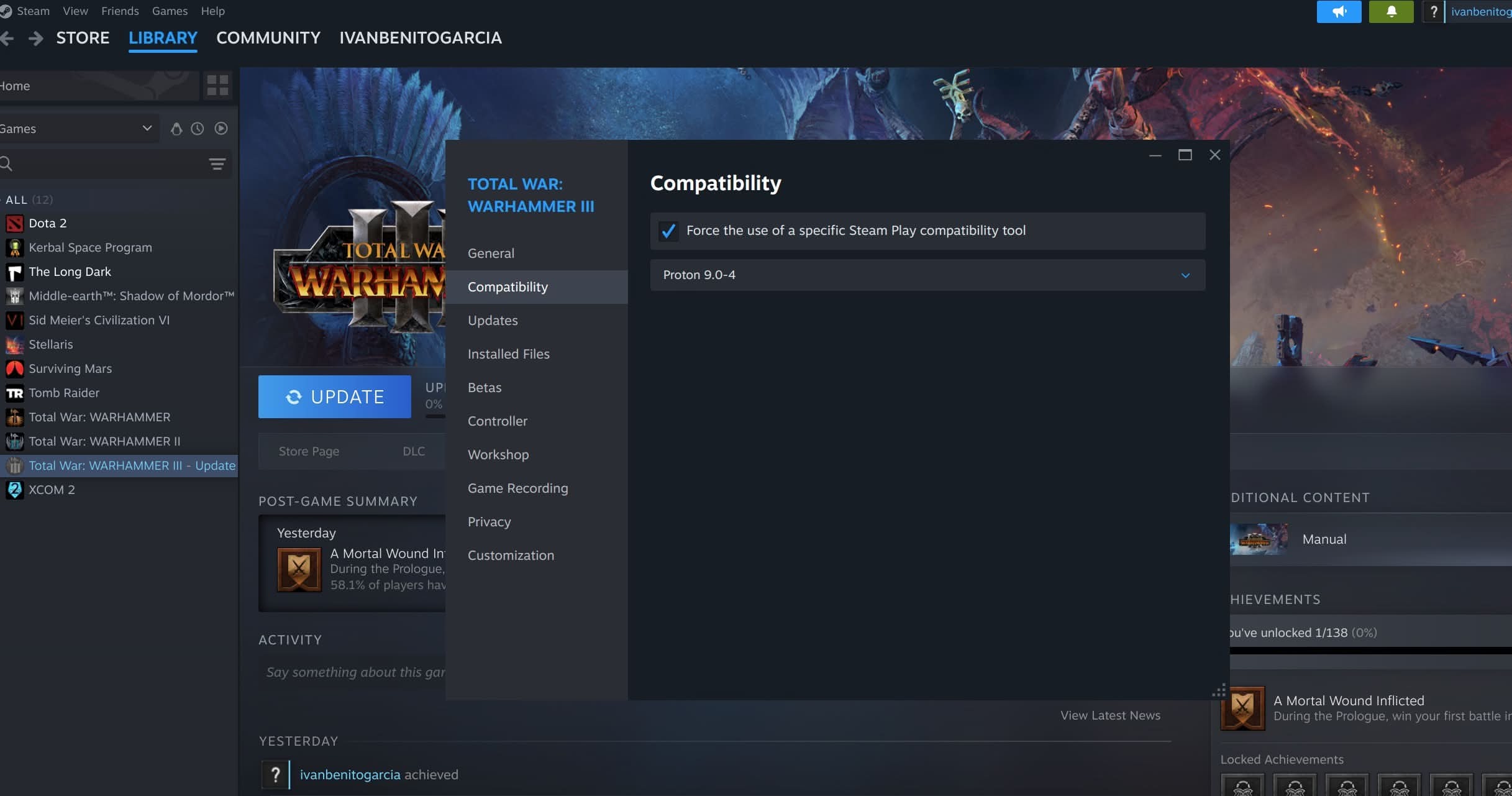 Para probarlo a fondo, hemos estado jugando a Total War Warhammer 3, un juego bastante exigente, sobre todo en grandes batallas. Al principio, nos salían avisos de que el juego no estaba optimizado para Linux. Han desaparecido después de forzar el uso de Proton Experimental en los ajustes del juego en Steam.